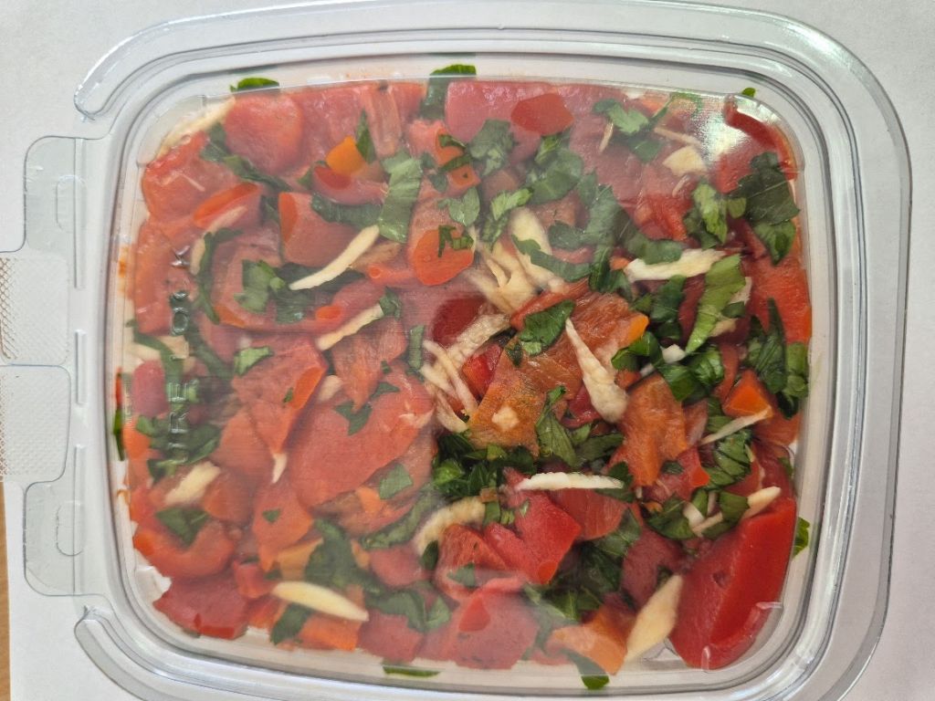 Сочни печени чушки, ароматен чесън и леко овкусяване с олио и сол – проста и вкусна салата, която е идеална като гарнитура или лека закуска.